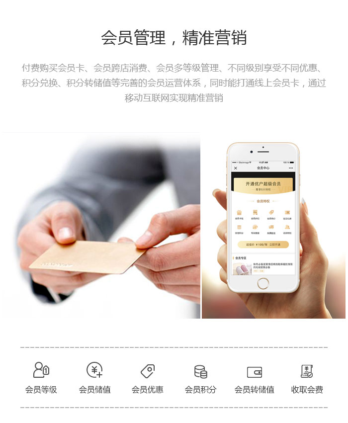 會員是門店營銷的重要因素,優(yōu)戶科技收銀軟件特有的會員管理功能,包括會員資料、會員類別、會員儲值和會員積分等基礎功能,另外根據(jù)門店的特點,設置會員卡、計次卡和預付卡等功能。