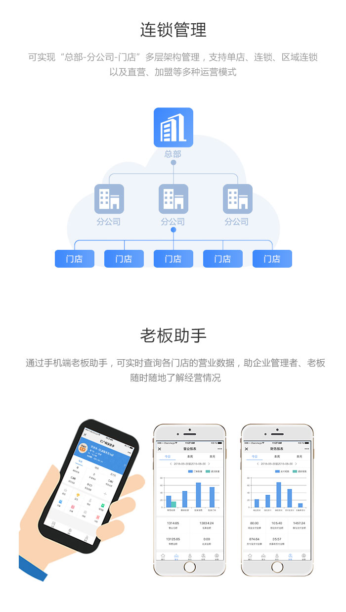 收銀系統(tǒng)后臺必須具備隨時隨地查看業(yè)務報表,分析生意情況,并進行門店會員信息管理,對賬以及訂貨等等。針對大型連鎖商場或者超市,更可使用區(qū)域管理功能進行權限劃分、設置區(qū)域總部等。