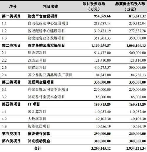 蘇寧云商發(fā)布公告稱,將獲得阿里巴巴集團(tuán)283億元戰(zhàn)略投資,以及10億元內(nèi)部認(rèn)購,總額不超過293.4億元。募集資金在扣除發(fā)行費(fèi)用后,將投向以下項(xiàng)目: