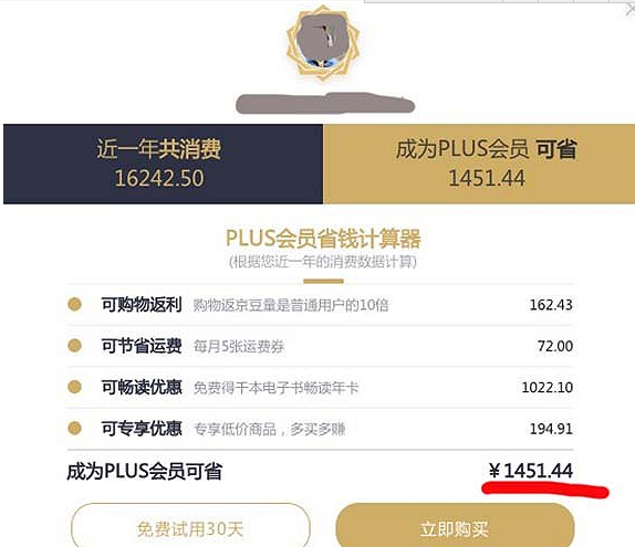 京東推出了類似“芝麻信用”的“小白信用”,小白信用30分以上可以邀請(qǐng)開(kāi)通PLUS會(huì)員。在推薦界面新聞?dòng)浾咿k理京東會(huì)員時(shí),京東給出了“省錢計(jì)時(shí)器”這樣的計(jì)算方式,并表示,如果辦理了PLUS會(huì)員一年可省下1000多元。并給出了會(huì)員體系可享受的福利:
